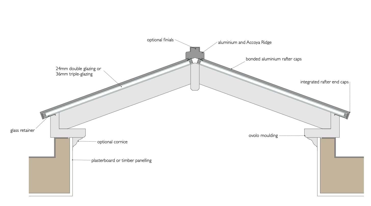 The rafters are typically 45mm x 95mm with 24mm double-glazed units.